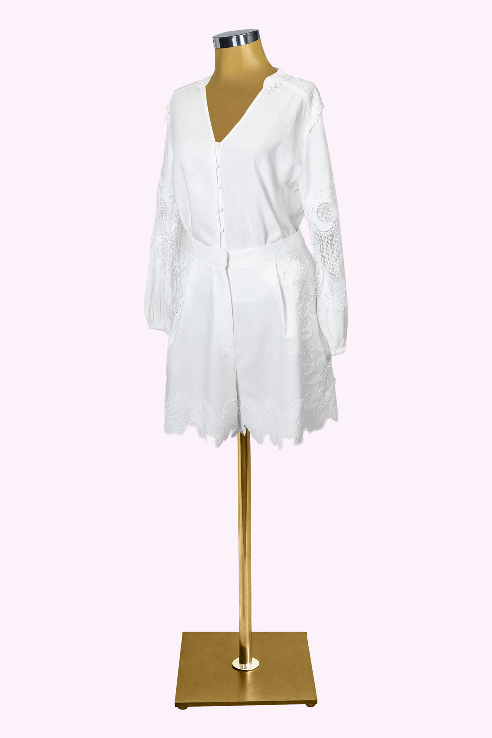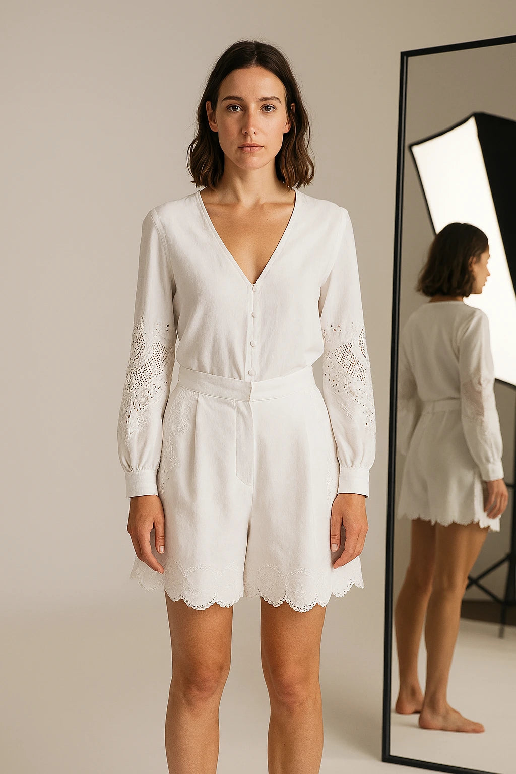 ● أكمام طويلة مع تطريز أنيق بالتطريز الإنجليزي