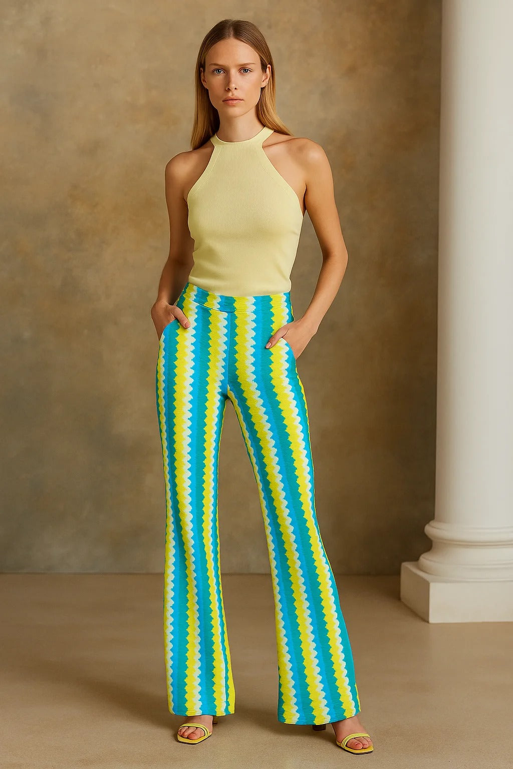 راجيا تحفة فنية ستغمركِ بنسيم بوهيمي عام ٢٠٢٥. تعكس أنماطها المتعرجة الزرقاء والصفراء والخضراء إيقاع الأنهار المتدفق، بينما ترمز قصتها الواسعة إلى الحرية. قماشها المصنوع 100% من الفيسكوز يتموج برشاقة مع كل خطوة، مُضفيًا الحيوية على كل لحظة، من حفلات الشاطئ إلى مهرجانات الصيف. راجيا، التي تُجسد روح إلهة النهر، تُضفي لمسةً من الأناقة البوهيمية مع الصنادل ذات الكعب العالي أو الإكسسوارات المصنوعة من القش. هذا البنطال ليس مجرد قطعة ملابس؛ إنه أسلوب حياة يتناغم مع طاقة الطبيعة المتدفقة. هذا الفستان ليس مجرد زي؛ إنه أسلوب حياة.
