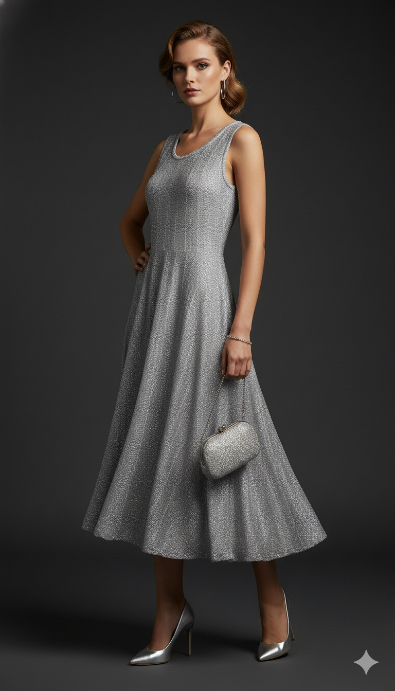 Ürün İsmiGümüş Rüya Elbise Kısa TanıtımGümüş Rüya, gece ışıklarını zarif bir akışa dönüştürüyor. İnce ışıltı...