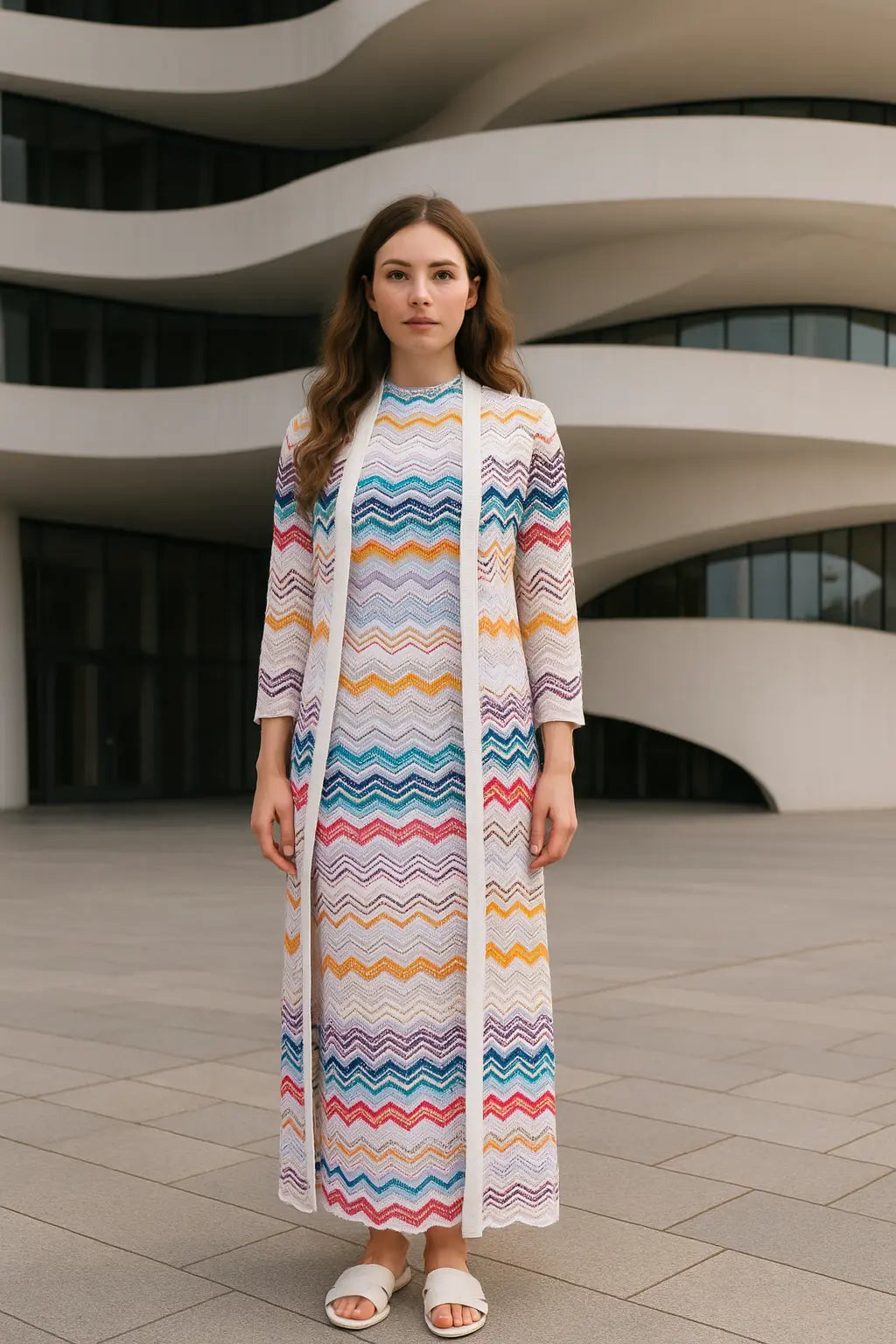 Iridea Unda, gökkuşağının tüm tonlarını zarafetle taşıyan bir yaz masalıdır. Dalga desenleriyle bezenmiş bu elbise,...