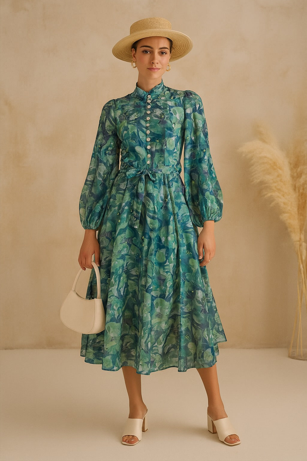NYMPHEA (Neden bu isim seçildi: Nymphea, su perilerini ve nilüfer çiçeğini simgeler. Bu elbisenin yaprak desenleri...