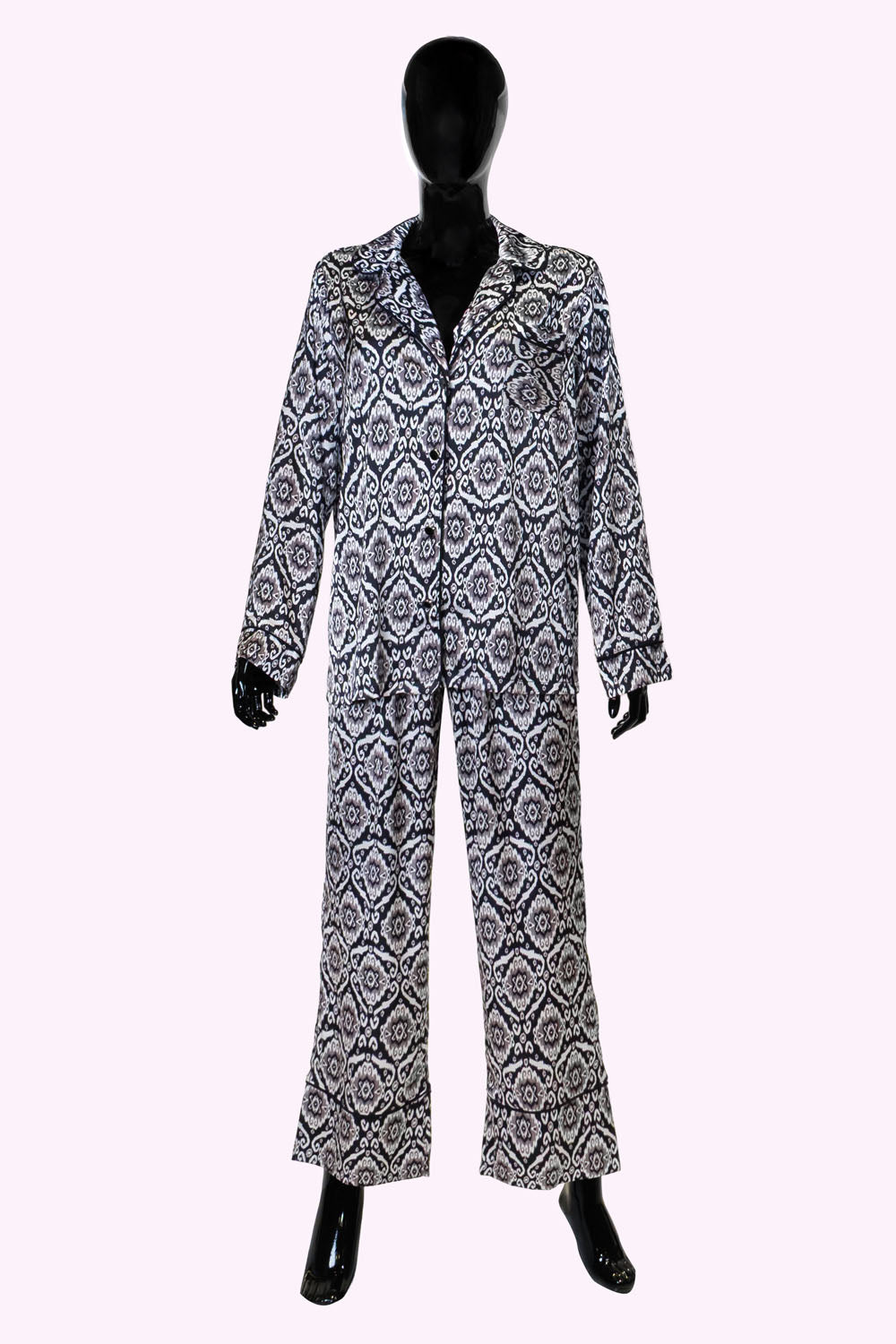 Uzun kollu gömlek formundaki üst parçası ve bol paçalı pantolonu ile rahatlığı ve stili aynı...