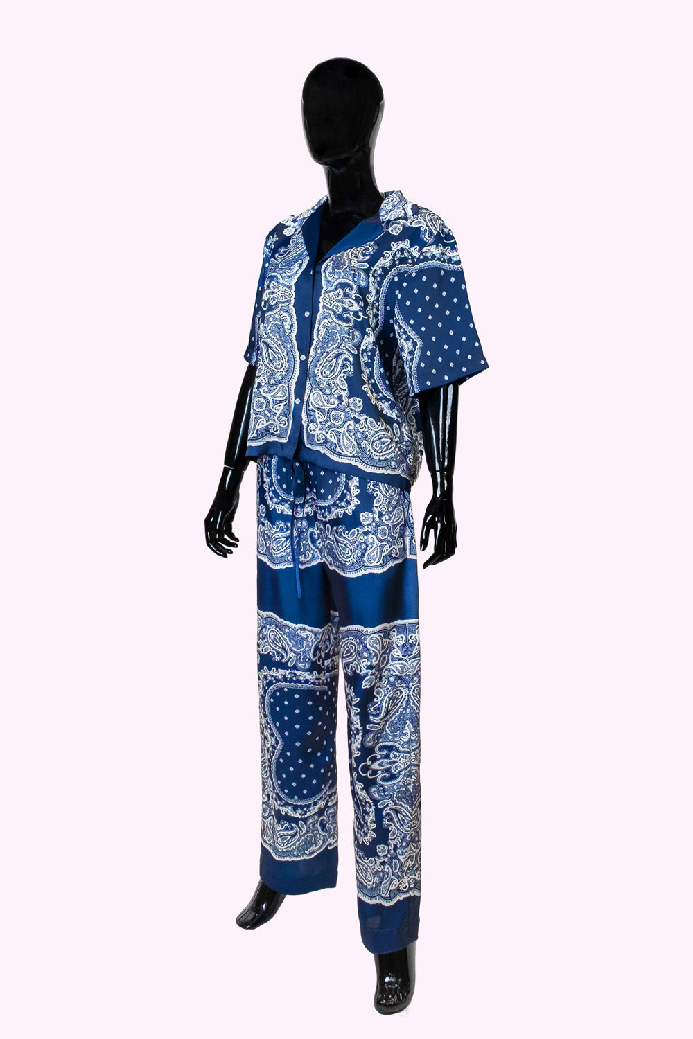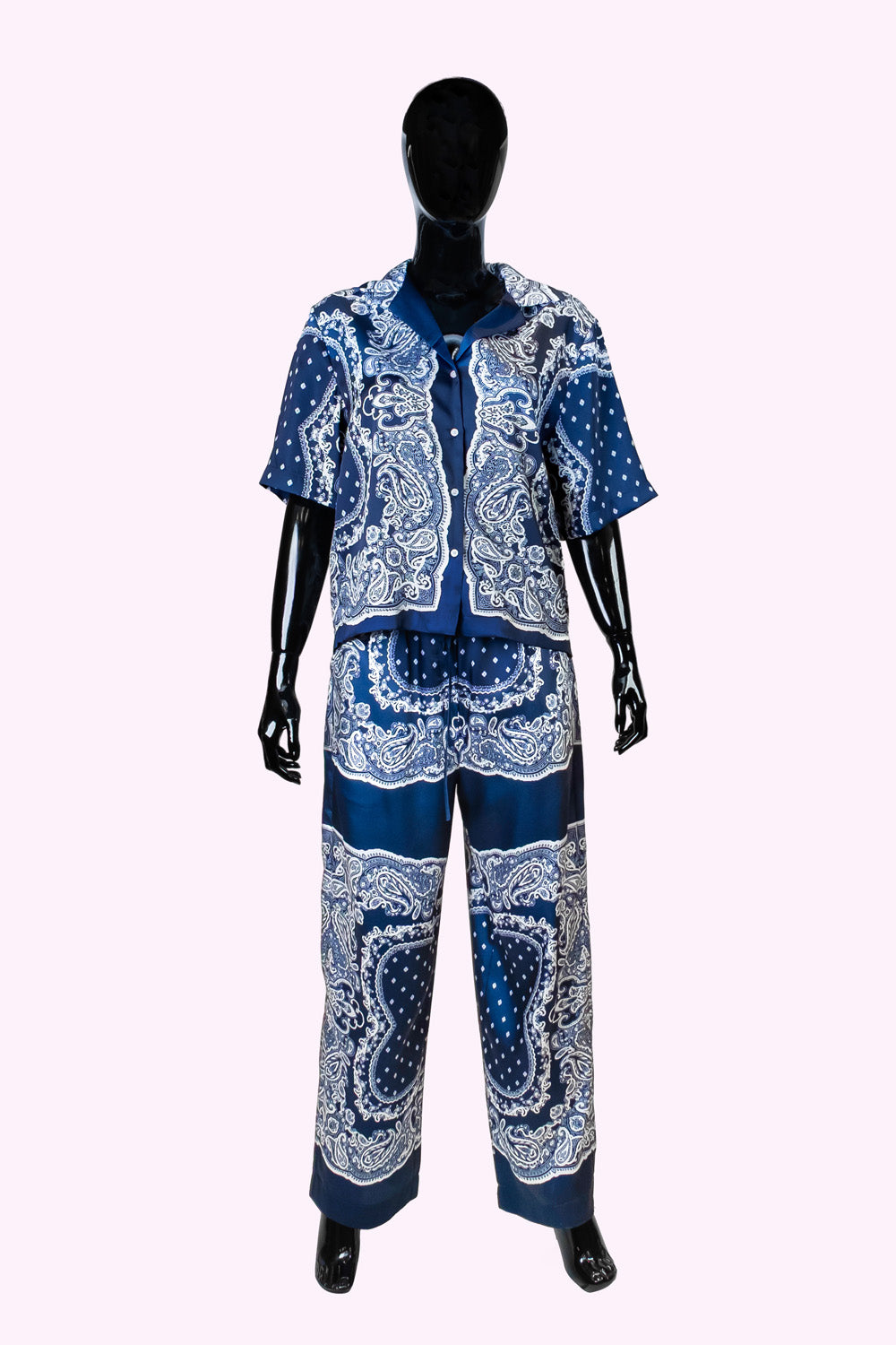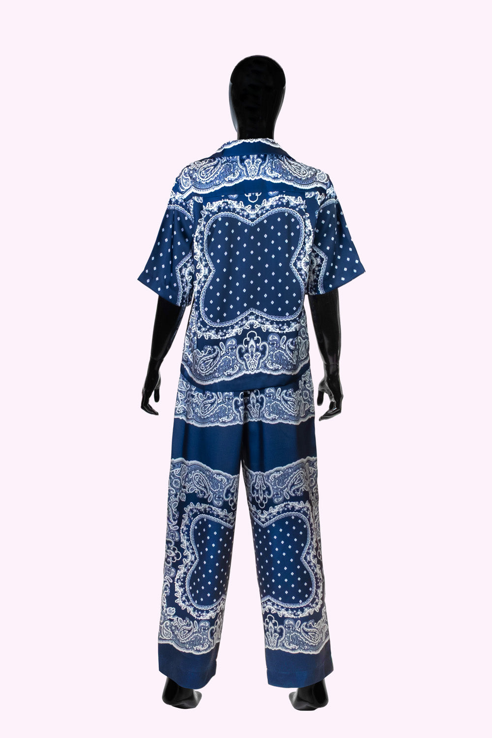 The Indigo Bandara suit is a modern classic that winks at rebellious spirits. Its short-sleeved shirt top and wide-leg trousers offer both comfort and style. What makes this piece unique is the contrast and symmetrical composition created by the juxtaposition of opposing bandana patterns. Whether you choose sneakers for a sporty chic look or sandals for a bohemian vibe, this suit is free enough to adapt to your style!