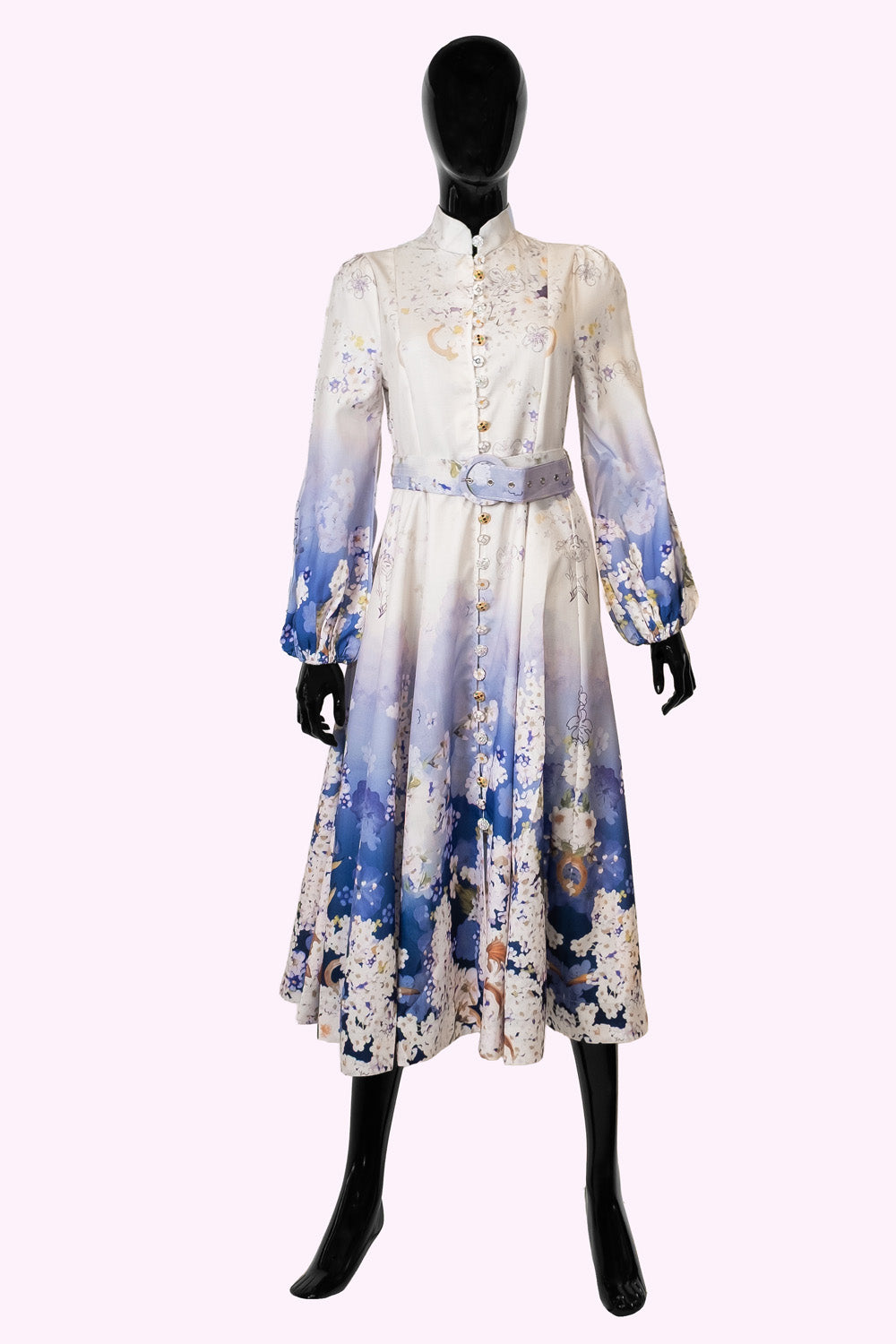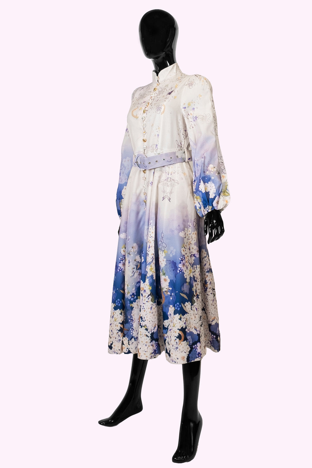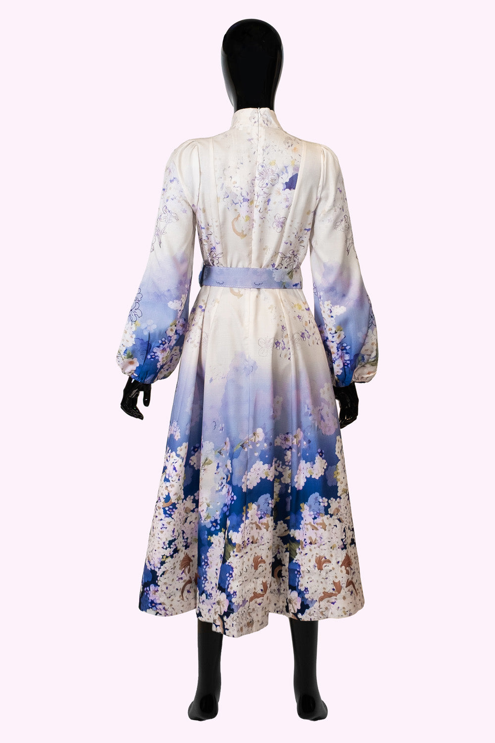 Velata Alba, rüyalarla dokunmuş bir bulut gibi üzerinizde süzülür. Pastel çiçeklerin zarif geçişleriyle gökyüzünü eteğinize taşır. Beli saran formu, bedenin zarafetini vurgularken tül detayları da hafifliğin izini sürer.