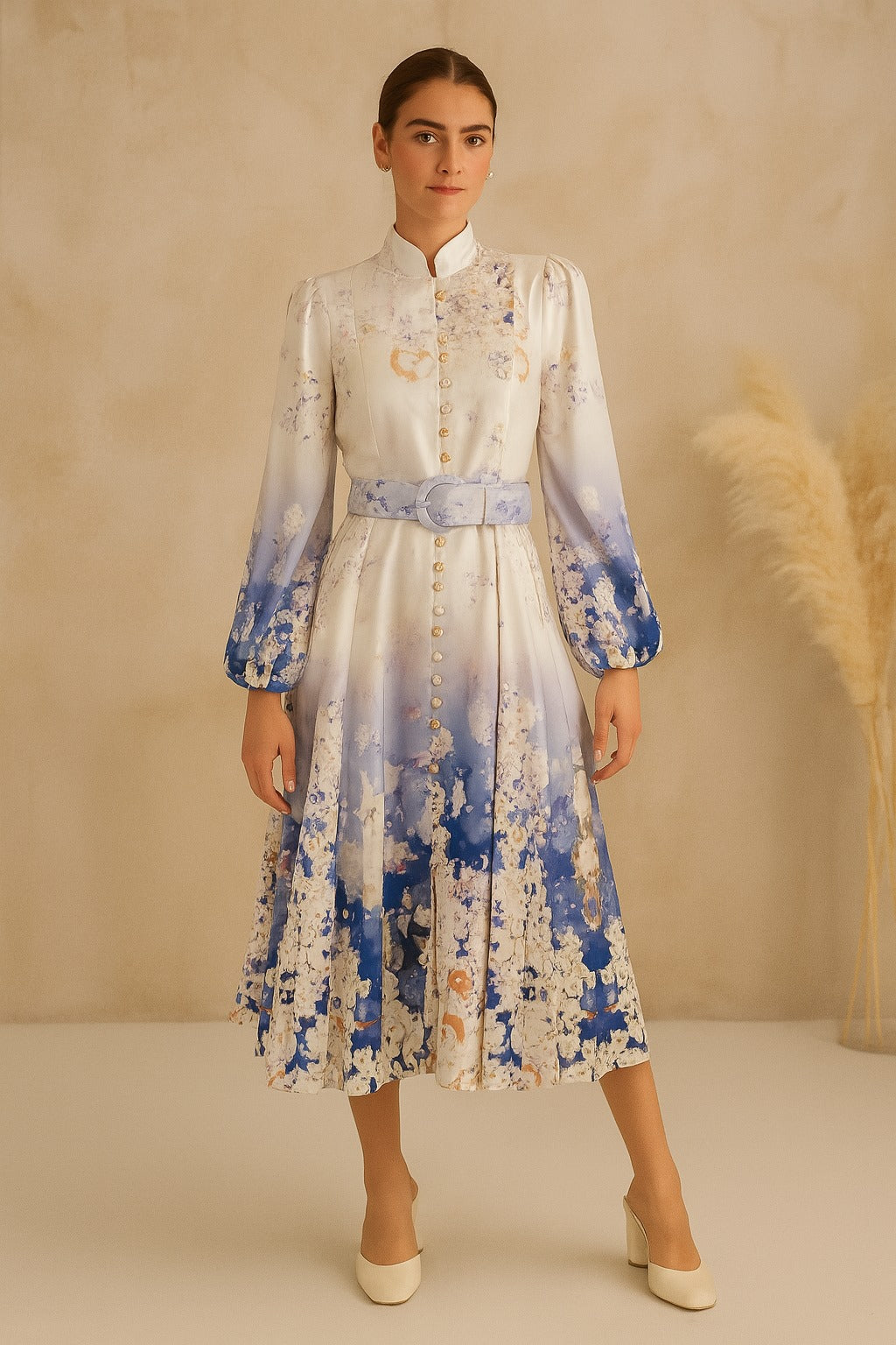 - Alt kısmı açık mavi-beyaz degrade çiçek desenleriyle bezenmiş