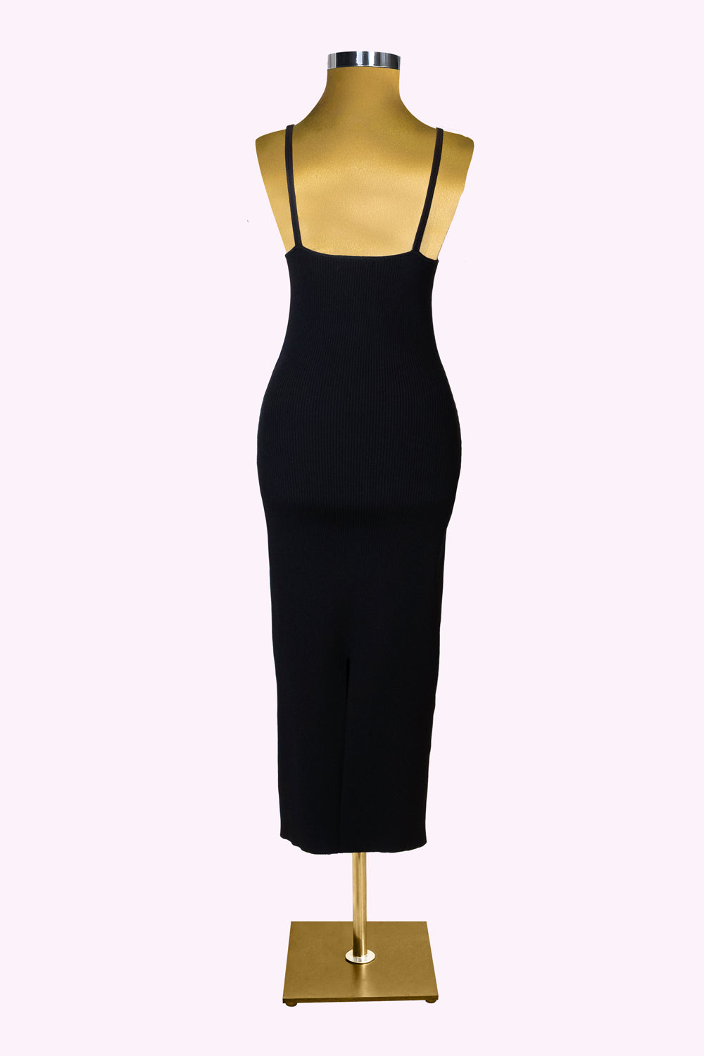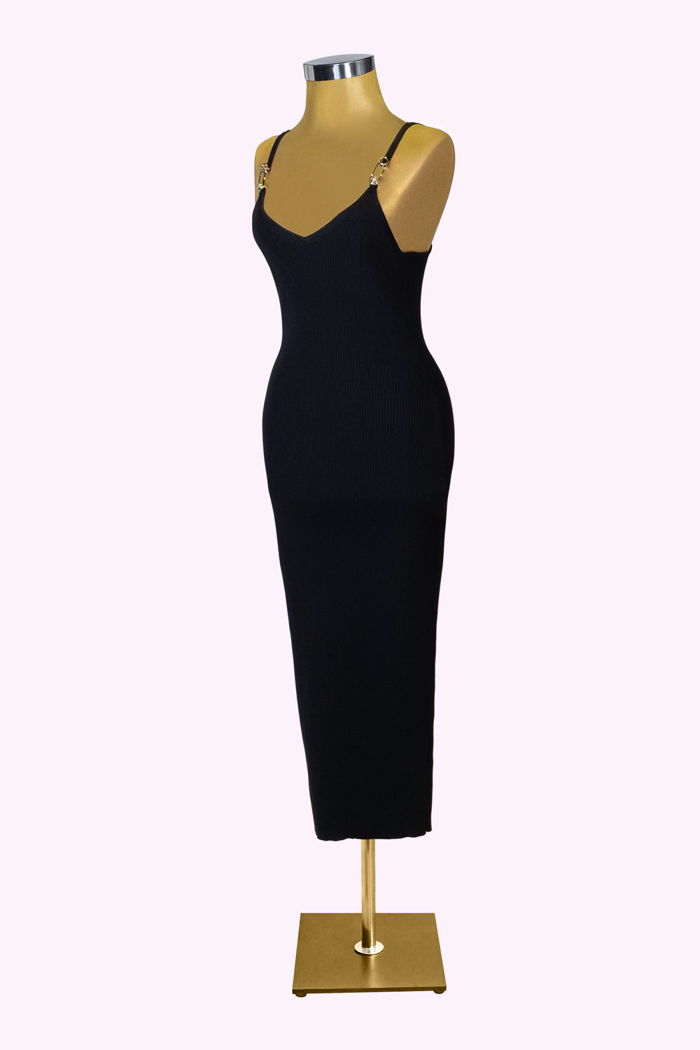 Litha, sade gücün ve rafine zarafetin tanımı. İncecik zincir askılarıyla vurgulanan çıplak omuzlar, ribana dokunun vücuda oturan formuyla mükemmel bir uyum yakalıyor. Elbisenin yalın çizgisi; minimalizmi seven ama detayda fark yaratmak isteyen kadınlar için.