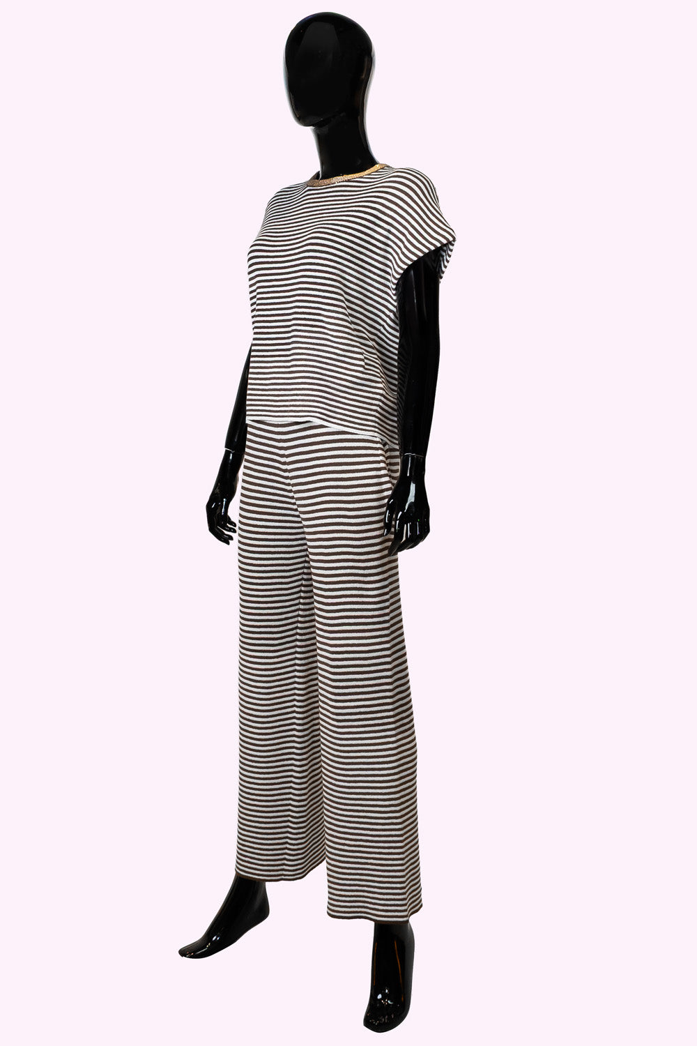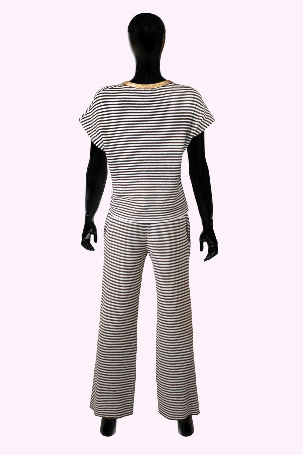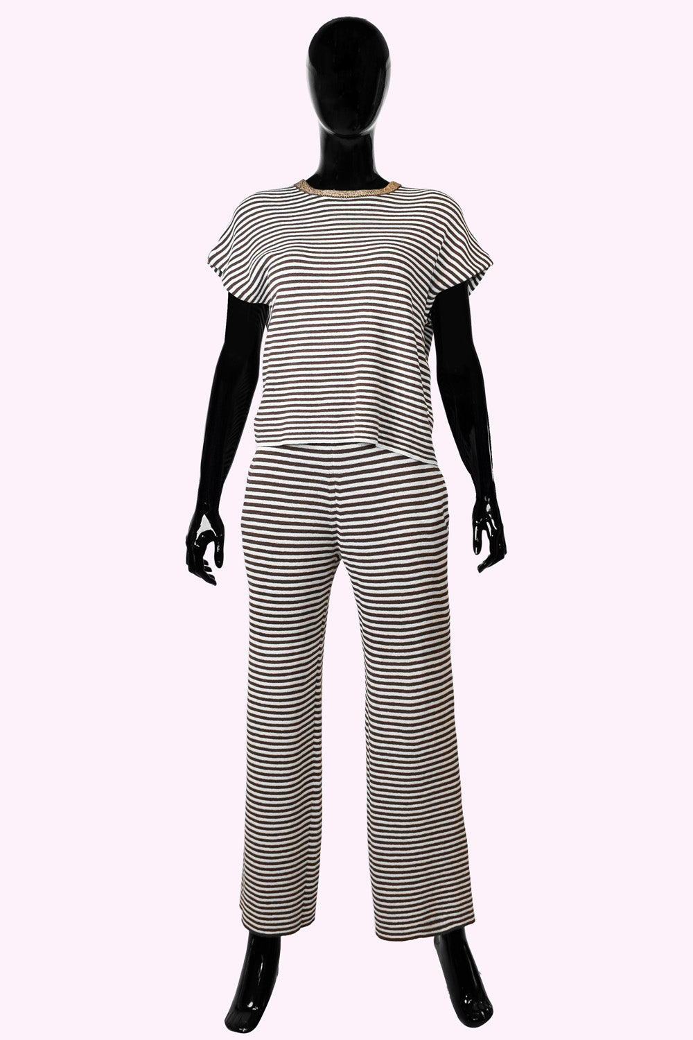 Zamansız şıklık sunan rahat ve zarif çizgili ikili takım.