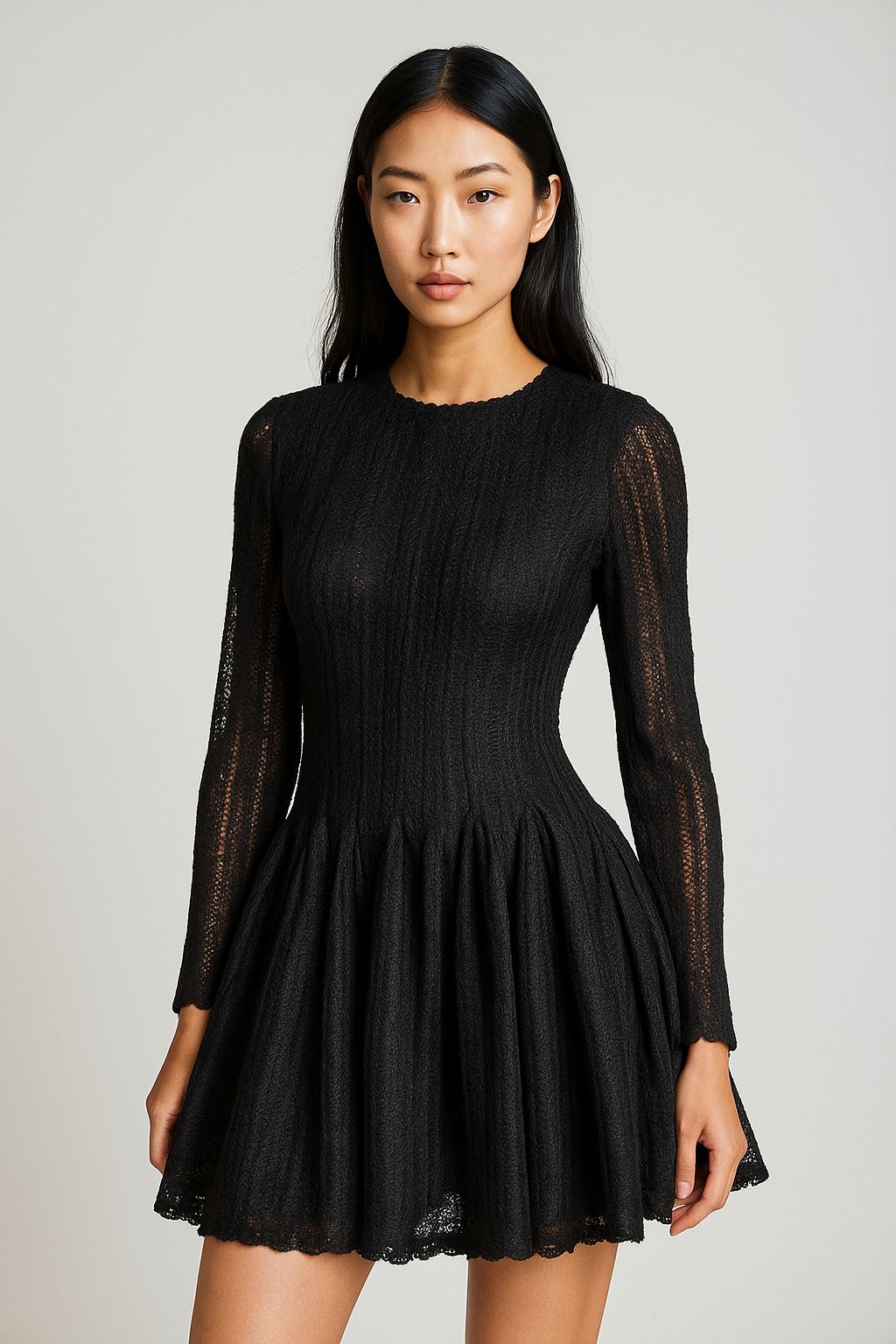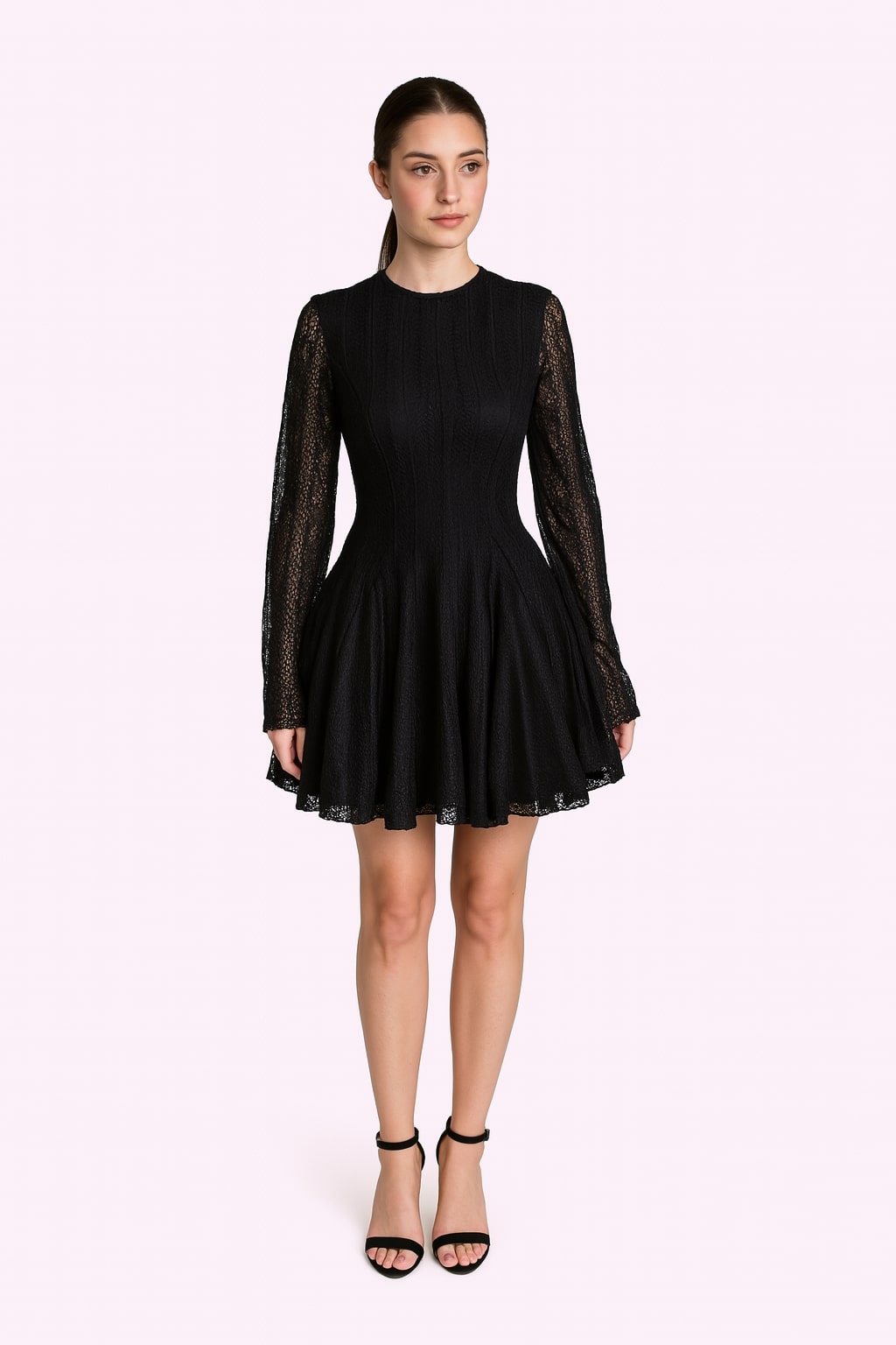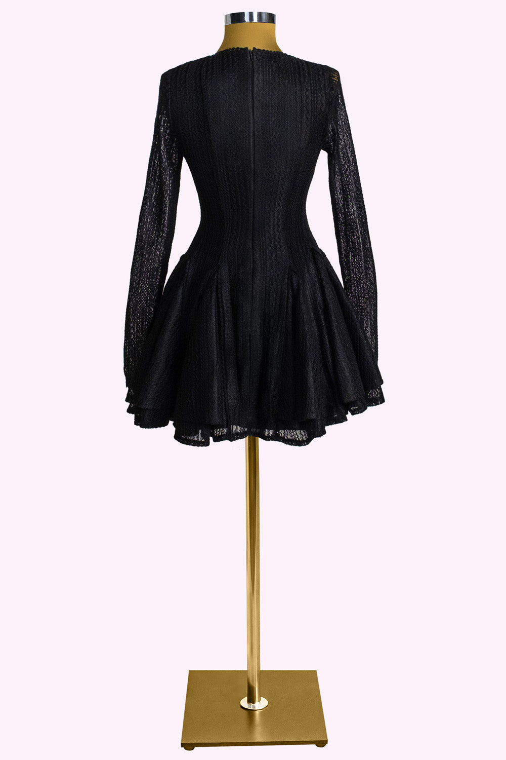 NOCTURA, gecenin zarif bir yankısıdır. Hafif transparan kol ve etek uçlarıyla, cesur ama ölçülü bir ifade sunar. Bel hattını vurgulayan yapısı, dalga dalga açılan etekle tamamlanırken, iç astarı sayesinde zarafetle konfor arasında kusursuz bir denge kurar.