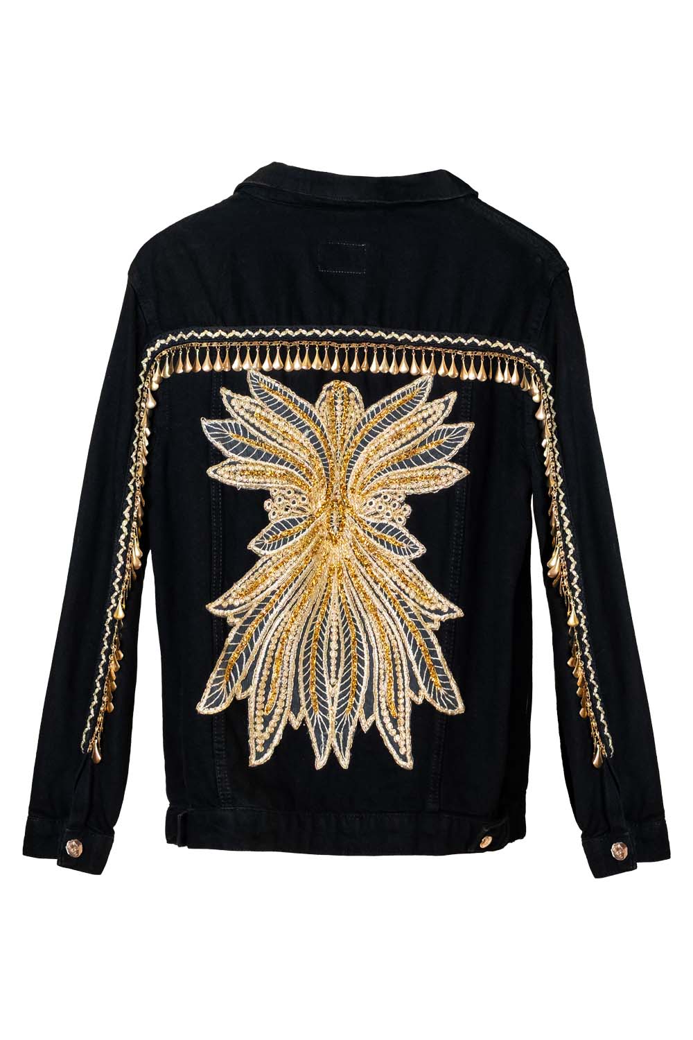 “Nocturne”, gecenin dingin melodisini; “Doré” ise altının sıcak parıltısını anlatır. Siyah denimin sakin fonu üzerinde sıralanan altın damlalar, bir gece ezgisinin notaları gibi ışıldar. Altın Gece, bu ceketle her adımda duyulan o sessiz ama etkileyici ritmin adıdır.