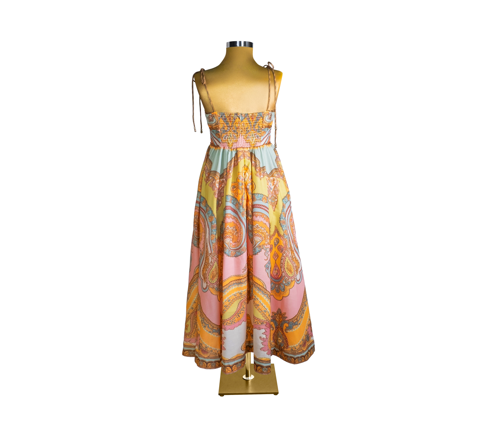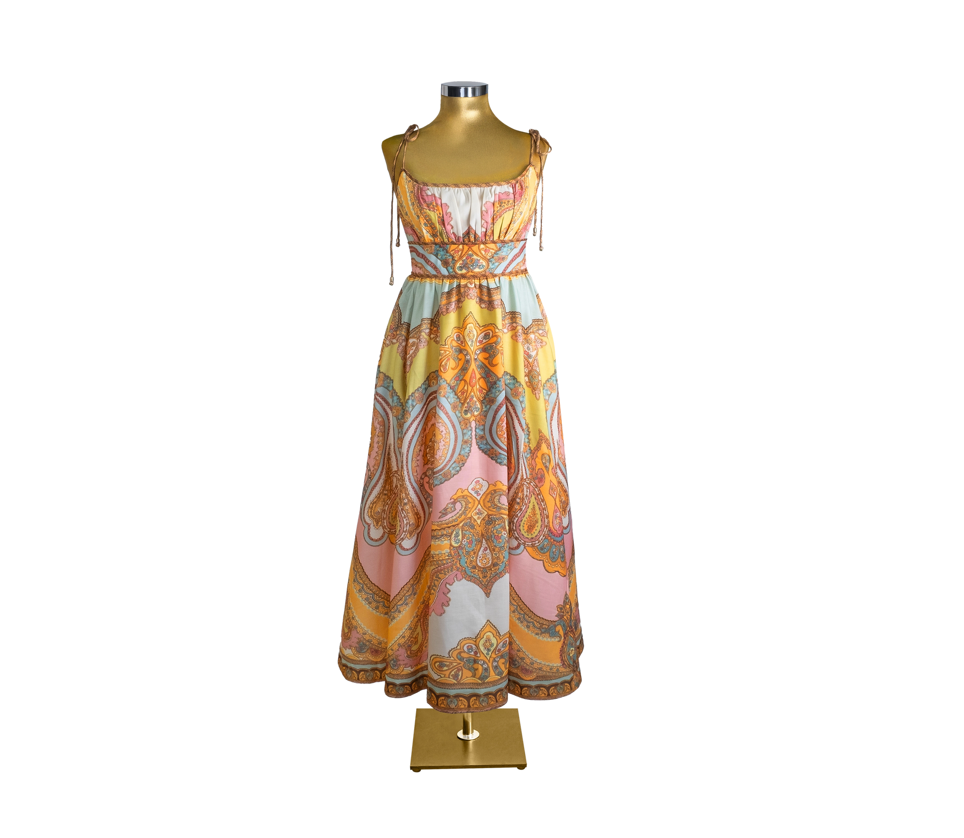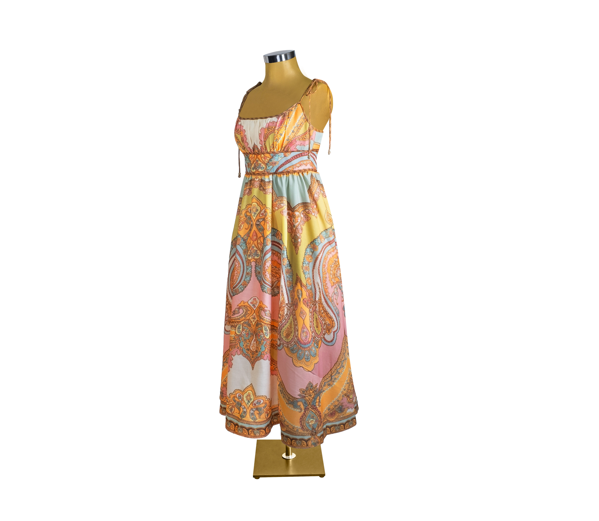 Dökümlü formu, ince omuz bağcıkları ve göğüs altından bollaşan kesimi sayesinde hem konforlu hem dikkat çekici bir siluet sunar.
