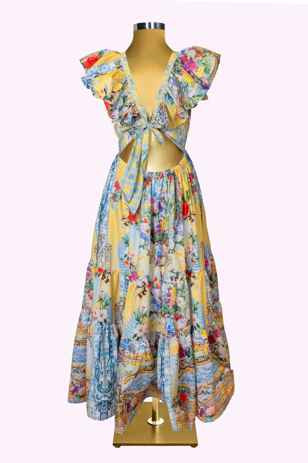 Bu elbise sadece bir yaz parçası değil; güneşin, denizin ve çiçeklerin dansı.