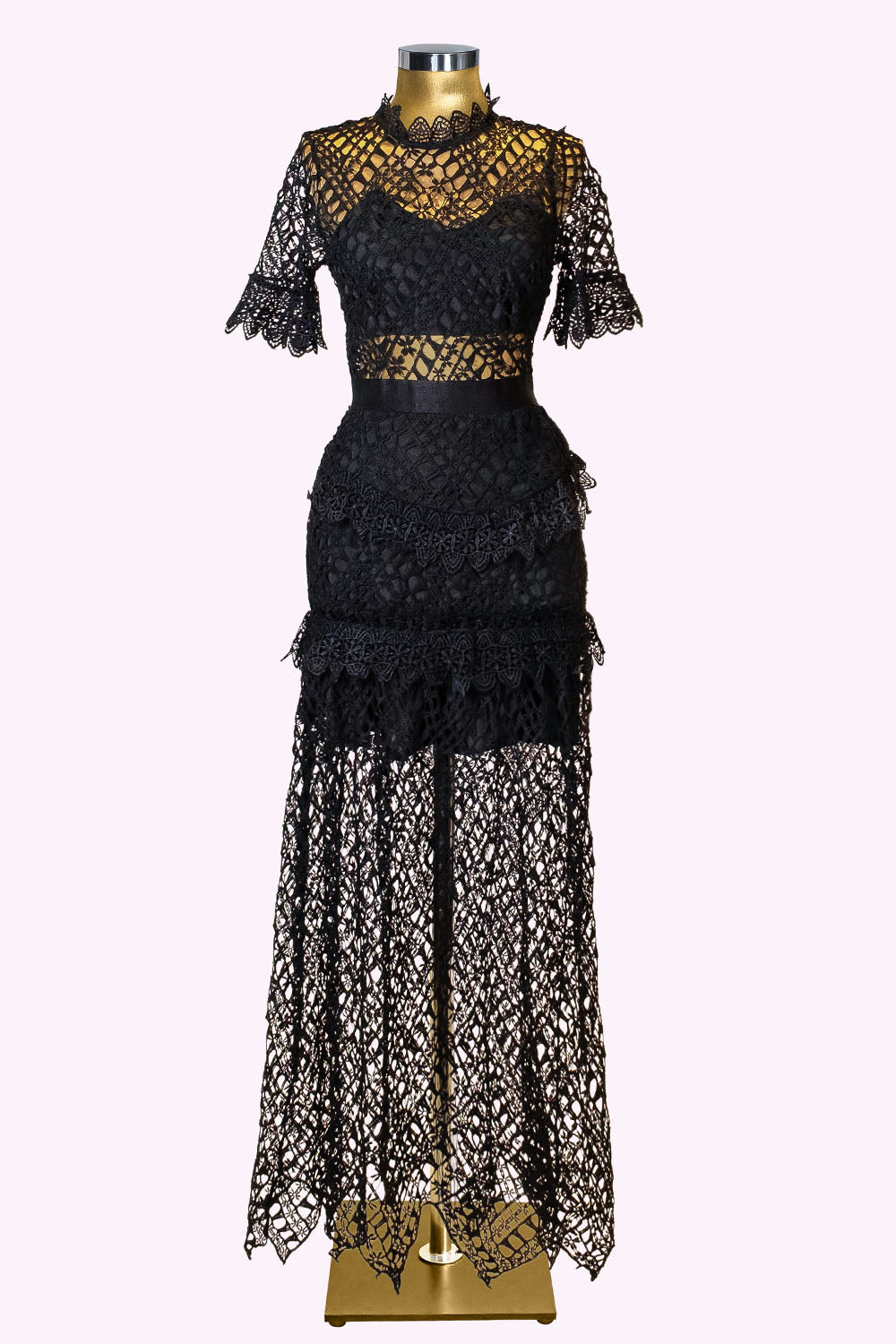 Yoğun dantel işçiliğiyle hem gösteren hem gizleyen bu elbise, ismini adeta beden bulmuş gibi taşır.